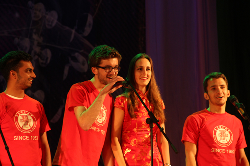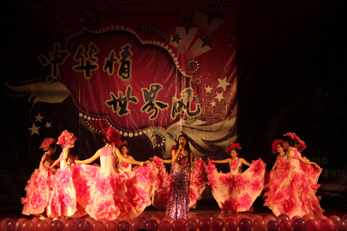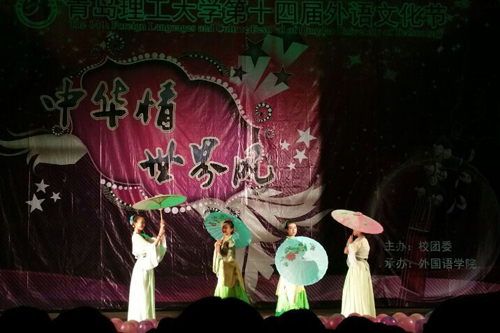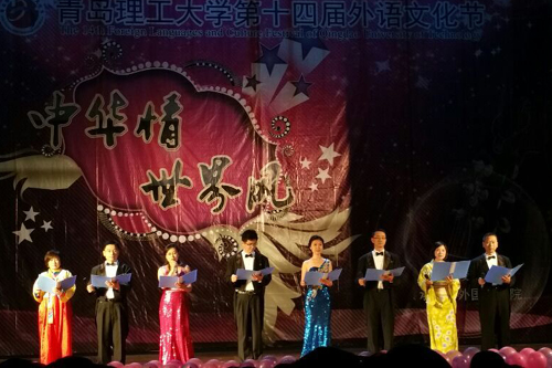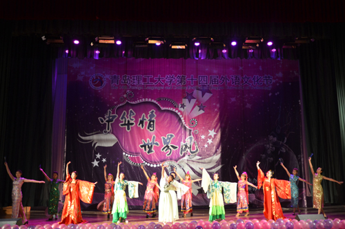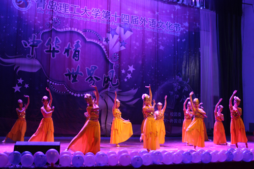 晚会以充满敦煌风情的开场舞《飞天》拉开序幕。来自英国、德国、韩国、越南等国的9位留学生,合唱了歌曲《大中国》,引得许多同学打着节拍跟唱。外国语学院老师们的诗歌朗诵《致青春》中外文结合,展示了深厚的学识风采。山东科技大学外国语学院带来的歌曲《get fire in the rain》劲爆十足。风趣幽默的相声《智取威虎山》,风姿绰约的古典舞《国色天香》,节奏明快的外文歌曲串烧等轮番登场,点燃了现场观众的激情。