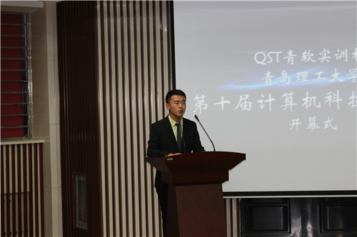 10月28日下午,QST青软实训杯365完美体育第十届计算机科技文化节在黄岛新校区一楼东报告厅开幕。副校长李东致开幕词。副校长张伟星及黄岛校区办、团委、学生处、教务处、计算机学院、青岛软件园等部门负责人出席了开幕式。