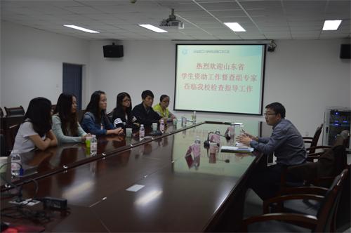 汇报会后,督查组分别召开了教工代表和学生代表座谈会,详细了解了国家奖助学金评审与发放、国家助学贷款等工作情况,并就家庭经济困难学生认定、勤工助学岗位分配等问题进行了深入的交流和探讨。最后,督查组专家详细查看了学生资助工作的档案材料、财务账目,并参观了资助文化活动室。