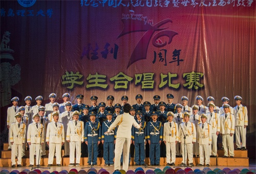 为弘扬伟大抗战精神,增强学生爱国情怀,9月17日下午,学校纪念中国人民抗日战争暨世界反法西斯战争胜利70周年学生合唱比赛在长江路校区科学会堂举行。校党委副书记杨向荣、副校长李东出席比赛现场,黄岛校区办、团委、学生处、教务处、各学院负责人、学生工作干部及部分师生观看比赛。