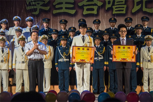 比赛在商学院带来的《走向复兴》与《我和我的祖国》的歌声中拉开序幕。随后,各学院代表队依次登台,他们身着统一服装,以饱满的精神和昂扬的激情将《在太行山上》、《保卫黄河》、《游击队之歌》、《长城谣》、《南泥湾》等经典歌曲演绎的淋漓尽致,激昂的旋律、蓬勃的朝气迅速点燃全场热情。比赛现场掌声、喝彩声此起彼伏,比赛气氛持续升温。最终,凭借着对各自歌曲的精彩演绎,计算机学院和自动化学院获得一等奖,高职学院、管理学院、外国语学院、人文学院获得二等奖,经贸学院、通信学院、机械学院、汽车学院、商学院、理学院获得三等奖。计算机学院李言涛荣获“最佳指挥”称号。