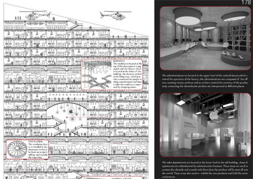 张泽华同学的参赛作品选址于美国纽约市,纽约作为美国高科技电子产品以及各种电子元件的产地之一,被誉为美国东海岸的硅谷,但是日益增长的城市人口和紧缺的土地资源,使得无法空余更多的城市用地服务于建造高科技工厂,张泽华同学通过为纽约设计超高层垂直工厂,解决了城市用地紧缺与工业发展的矛盾问题,同时合理调整生产结构,使垂直工厂为未来城市发展带来更多便利。
