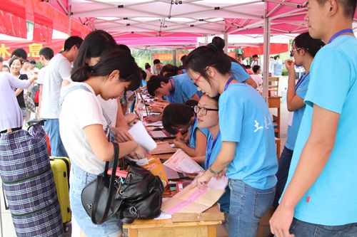 清晨,各学院、各有关部门的工作人员就已全部就位,以饱满的热情、严谨的态度和高度负责的精神投入到迎新工作中。