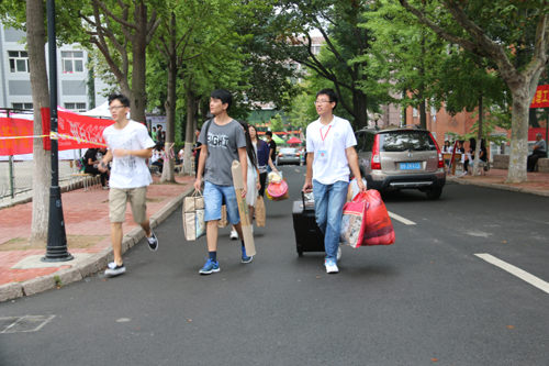 今年学校首次实行新生网上报到,新生到校后直接由高年级学生志愿者带去公寓,人流到校后很快分散。报到手续简化,让往年新生报到时拥堵的车流、排队的长龙没有再出现。