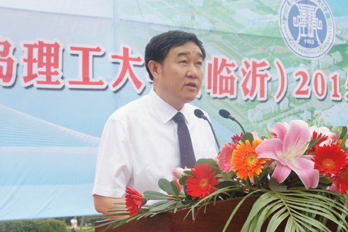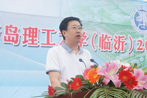 在临沂校区,临沂市人民政府副市长侯晓滨讲话,临沂校区副校长朱卫东宣读《关于表彰2015届优秀毕业生和考取硕士研究生同学的决定》。费县县委书记、县人大常委会主任程守田,费县县委副书记、县政府县长刘飞,山东华通路桥工程有限公司董事长全恩厚出席典礼。