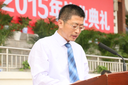 薛允洲代表学校全体教职员工,向圆满完成学业的同学们表示热烈祝贺,向为培养同学们成长成才付出辛勤劳动和心血的学校老师及家长们表达最由衷的敬意。