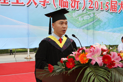 教师代表机械学院郭峰教授、环境学院王海英副教授、临沂校区机电工程系魏云玲老师在发言中表示,同学们毕业走出校门,标志着成熟与自立,从此开始独立面对外部的世界、筹划自己的人生;希望同学们在未来的征程中用信念立足社会、用智慧筹划事业、用勇气应对困难,积极投身祖国建设大业,为实现中华民族近代最伟大的“中国梦”而拼搏和努力。
