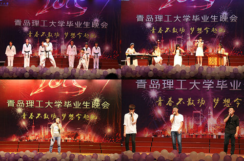 市北校区晚会在四个学院学生共同表演的开场舞中拉开帷幕。舞蹈《匆匆那年》表达出淡淡的感伤,青岛科技大学师生的小提琴四重奏《草帽舞》优美悠扬,小朋友的舞蹈《快乐姑娘》充满了天真童趣,帅气的跆拳道令人热血澎湃,《筑梦青春》将建筑设计完美融入舞蹈,歌舞《好儿好女好江山》大气磅礴,水鼓表演《Incredible》激扬振奋,器乐合奏《胜利》动静相融,感人至深的朗诵《今天,我们毕业了》,诙谐幽默的情景剧《大学那些事》等一系列精彩的节目,将毕业季的沉醉与感慨、欢乐与希望表现的淋漓尽致,掌声和欢呼声齐聚一堂。