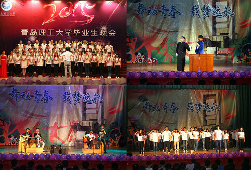 四载时光飞逝过,一朝欢聚话真情。6月16日、18日晚, 2015届毕业生文艺晚会分别在市北校区和长江路校区精彩上演。校党委副书记杨向荣、副校长李东、校长助理朱申红出席晚会现场。黄岛校区办、团委、学生处、教务处、后勤处、部分学院负责人、团学工作干部等数千名师生观看演出。