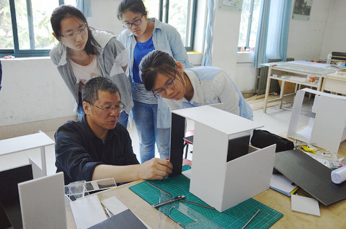 顾大庆还为学院师生准备了一场别开生面的建筑初步演示课,演示课全程由王少飞老师陪同并主持,授课内容延续了学术讲座上提出的空间透明性原则,让同学们通过自己动手制作模型的方式探讨空间与空间之间的关系。与顾教授的交流过程中,同学们对空间的关系有了更进一步的理解,渐渐感受到了空间的魅力,顾大庆也通过此次交流发现了理工大学在本科教育上的特色与不足,并提出了自己的建设性意见。