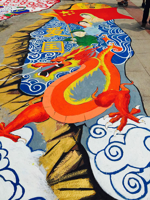 6月10日,琴岛学院第七届大地画活动在音乐广场举行。本届大地画活动以“同绘新蓝图·共筑中国梦”为主题,围绕社会主义核心价值观进行创作,12幅大地画作品依次排开,构成了一幅中国版图的结构。每幅大地画都独具匠心地融入了中国传统文化元素,使社会主义核心价值观的内涵得以充分展现。