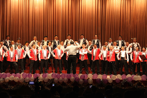 音乐会的开始,一曲气壮山河,荡气回肠的混声合唱《神圣的战争》将我们带到了这个英雄的时代。这首不朽的苏联歌曲,让在场观众热血沸腾,感受到英雄的雄壮豪迈。忆当年,侵略军压边境,战士们别家园,《斯拉夫送行曲》这首歌伴他们出征,同他们辉煌。演唱完毕,全场爆发出雷鸣般的掌声,振奋人心,现场气氛一开始已领到高潮。之后女声合唱《春天年年到人间》,质朴优美而又忧伤的旋律,塑造了纯洁可爱的卖花姑娘的艺术形象,表达了对敌人的愤慨,又突出了对祖国的热爱。把梦种下,用花覆盖,心雨悄悄灌溉,一首青春的歌《自由飞翔》,又带给我们一种心旷神怡,春风拂面的感觉,现场气氛热烈,喝彩声接连不断。男声合唱《飞吧,让思想乘着金色的翅膀》、《怀念战友》、《铁钻合唱》婉转动听,气势恢宏,在演唱者的精心演绎下,让我们感受到别样的音乐风格,重温了那一段为国奋战的年华,向英雄致敬!