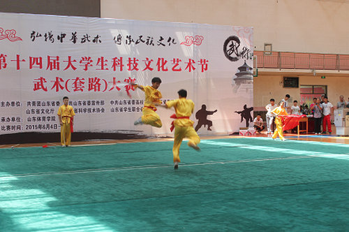 6月6日,山东省第十四届大学生科技文化艺术节武术(套路)大赛在山东体育学院落下帷幕。临沂校区代表队夺得团体项目冠军,工程管理系造价143班学生左斌豪获剑术第三名、长拳第四名,工程管理系建管141班学生郭树远获太极剑第五名。