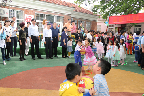6月1日上午,校党委副书记刘龙海、副校长杨兴昌在后勤处、妇委会、人事处等相关部门负责人的陪同下,来到365完美体育幼儿园,亲临欢庆现场,详细询问和了解幼儿园相关情况,向小朋友们及教师致以节日的问候,祝小朋友们节日快乐、健康成长。