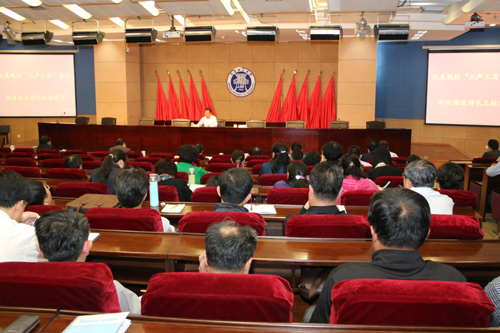 薛允洲在阐述“三严三实”的重大意义和丰富内涵时指出,“三严三实”是全面从严治党的重要内容,是协调推进“四个全面”的重要保证。全校各级党组织、党员干部要深刻认识开展“三严三实”专题教育的重大意义,深刻领会“三严三实”的丰富内涵,迅速把思想和行动统一到中央和省委决策部署上来,切实增强责任感、紧迫感和使命感,以饱满的热情、务实的态度、有力的举措抓好专题教育各项工作,进一步带动形成学习、宣传、落实“三严三实”要求的浓厚氛围,确保中央和省委部署要求在学校落地生根、开花结果。