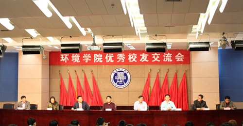 五位校友分别为水79级校友邓杰,水83级校友赵永贞、毕京松,水88级校友薛欣喜和水90级校友刘青。环境学院党总支书记董典同、院长吕谋分别致辞,会议由校友校董办张国昌老师主持。