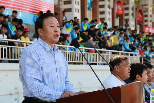 校党委书记薛允洲宣布运动会开幕,校党委副书记杨向荣致开幕词,副校长李东致闭幕词,体育教学部主任沙洪成主持开、闭幕式。
