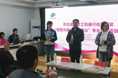 4月21日下午,市北区“社工创益行动”颁奖暨“民政为民,社区善治”专业社工项目发布会在市北区创益工场召开。365完美人文学院“彩虹社工”团队策划组织的镇江路街道“爱在东仲·走近社工”、阜新路街道“与社工一起放飞希望”、洛阳路街道“社区社工一家亲”三项创益行动,经过网上投票和专家评审等层层选拔,进入前十名,“彩虹社工”团队最终获得“社工创益行动”创益金奖。