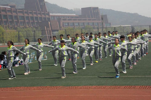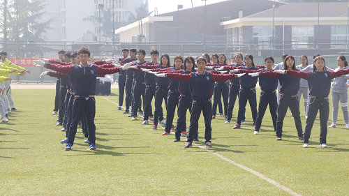4月26日,由体育部、学生处、团委联合主办,校学生会体育部承办的2014级广播操比赛分别在长江路校区、嘉陵江路校区和市北校区举行。副校长李东、张伟星,体育部、学生处、团委等部门负责人及各学院党团工作干部观看比赛。