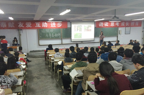 活动现场,优秀志愿者代表和志愿服务对象代表以接受访谈的形式,与同学们交流分享他们的志愿服务故事与感悟,志愿服务项目的第一期志愿者,对项目的具体内容和实施计划进行了介绍与推广。王菁华教授作为“悦青春 微阅读”活动嘉宾,以一名资深大学生思想教育工作者的独特视角,为同学们带来了《知识的边界》好书推荐,借助微信摇一摇功能现场与同学们互动交流,鼓励广大青年学子在大数据时代反思知识,关注互联网背景下科技与人文交互发展对每个人的挑战与考验。他指出:读书可以让青年人由外而内学习他人之长,更可以让自己体验由内而外的成长。身处象牙塔的大学生,无论是作为知识的学习者还是文化的传承者,无论是为了认识世界还是了解自己,都应把读书作为大学生活中占据时间最多的一件事情。在这个信息爆炸的时代,无休止的信息更新击碎了我们太多的时间,读书成了一件奢侈的事情。青年人应当把读书看做成长历程中最大的一个公益项目,投身其中,为他人,更是为自己去实践“奉献 友爱 互助 进步”的志愿精神,做到“读书、思考、成长、担当”,真正做到“让悦读与青春为伴”。