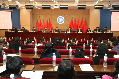 3月10日上午,学校在学术报告厅召开党委扩大会议,研究部署2015年党委行政工作。校党委书记薛允洲主持会议并讲话,校长徐剑波对今年学校党政工作进行了全面部署。学校领导班子成员,副处级以上干部,正高级职称专家,市级以上党代表、人大代表、政协委员、民主党派主要负责人和无党派代表人士等参加了会议。 2015年学校工作的总体要求是:以邓小平理论、“三个代表”重要思想、科学发展观为指导,深入学习贯彻党的十八大、十八届三中、四中全会和习近平总书记系列重要讲话精神,认真贯彻落实党的教育方针,持续推进内涵建设,继续深化改革,优化资源配置,改善办学条件,统筹兼顾,突出重点,攻坚克难,狠抓落实,全面完成“十二五”规划发展任务,不断提高人才培养质量和科技创新能力,努力开创学校各项工作新局面。 徐剑波从以下七个方面对2015年学校工作进行了部署:一、突出提升教育质量,完善人才培养体系。深入推进特色名校建设;提升本、专科教育教学质量;提高研究生培养质量;推进继续教育发展;提升学生教育管理服务水平;强化招生与就业创业工作。二、发挥学科引领作用,增强科研与社会服务能力。强化学科建设的引领作用;提高科技创新能力;提升社会服务水平。三、实施人才兴校战略,建设高素质师资队伍。加强人才队伍建设;推进人事管理制度改革。四、健全保障机制,提高管理服务效能。全面总结“十二五”工作,科学制定“十三五”规划;完善内部治理结构;提高管理水平与效能;提升临沂校区办学水平;做好财务、审计及招投标管理工作;加强国有资产和产业管理;提升后勤服务保障水平。五、努力改善办学条件,营造良好育人环境。切实推动校区布局调整和资源优化工作;推进校园基本建设;提高校园公共服务能力。六、强化开放办学理念,推进对外合作交流。推进校董、校友工作与基金会建设;加强国际交流与合作。七、全面加强党的建设,提高党建和宣传思想政治工作科学化水平。认真组织开展教育实践活动整改落实“回头看”,持续抓好整改落实;加强和改进宣传思想工作;加强领导班子和干部队伍建设;创新基层党组织建设;推进党风廉政建设;加强大学生思想政治教育与文化建设;认真做好统战、群团和离退休工作;维护校园安全稳定。 就认真做好今年的工作,薛允洲在讲话中提出四点要求和希望。第一,坚持统筹兼顾,突出重点,整体推进各项工作。要进一步认清经济新常态下的高等教育发展形势,围绕改革发展与依法治校这两大关键,把握好突出重点与整体推进的关系,科学合理安排各项工作,以点带面,点面结合,推动学校各项事业取得新的突破。第二,坚持求真务实,强化责任担当,狠抓工作落实。要认真落实习近平总书记提出的“谋事要实、创业要实、做人要实”的要求,发扬担当精神,把干事创业作为最大责任,做到勤勉敬业、尽职尽责;继续实行抓落实的机制,按照责任分工,加强工作督查,开展经常性的调度,及时跟进,一件一件地抓落实,一个时间节点一个时间节点地向前推,确保将目标变成成果,将计划变为现实。第三,进一步转变作风,牢固树立为师生、为基层服务的思想。要进一步牢固树立群众观念和以人为本的思想,进一步增强全心全意为师生服务、为教学院部服务的意识,注意改进工作的方式方法,经常深入教学科研一线,密切联系师生,多为师生办实事、做好事、排忧解难。第四,坚持从严治党,持续抓好党风廉政建设。全校党员干部要按照习近平总书记“三严三实”的要求,进一步落实好中央八项规定和省委实施办法,持续整治“四风”问题,巩固教育实践活动的成果,做到对党忠诚、个人干净、敢于担当。要切实落实好党委主体责任和纪委监督责任,通过建立和健全惩治和预防腐败体系,树立领导干部廉政、勤政的良好形象,营造风清气正、干事创业的良好氛围。 会后,全校各党总支共分成23个小组对学校今年的党委行政工作要点(征求意见稿)以及如何围绕学校党委、行政2015年工作部署,落实好学校事业发展的中心工作和重点任务进行了讨论。会场 校党委书记薛允洲主持会议并讲话 校长徐剑波部署2015年学校工作 分组讨论