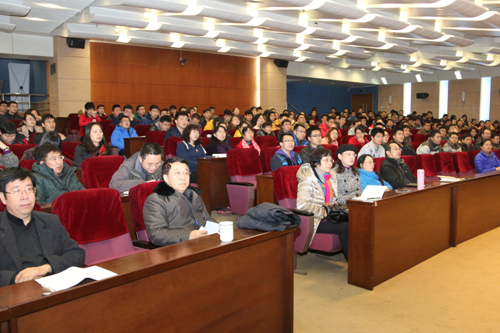 1月14日,“山东省蓝色经济区工程建设与安全协同创新中心院士(专家)讲坛”2015年第一讲在市北校区学术报告厅举行。中心邀请中国工程院聂建国院士做了题为《组合结构的创新与实践》的学术报告。报告会由赵铁军副校长、王燕教授主持,土木学院200余名师生聆听了报告。