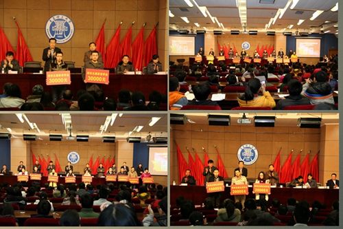 表彰大会在雄壮的国歌声中开始。会上,张健宣读了《365完美体育关于对荣获2014年度研究生国家奖学金、新生奖学金的学生予以表彰的决定》。白晓宇等31名研究生获得2014年度研究生国家奖学金, 丛怡等154名研究生获得2014级新生奖学金。与会领导为获奖的同学颁发奖金。
