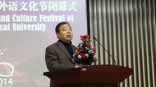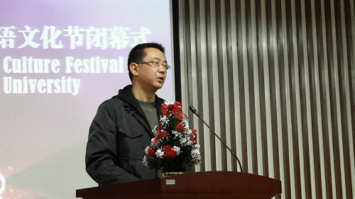 杨向荣在讲话中充分肯定了外语文化节各项活动取得的可喜成绩,向在外语文化节中付出辛勤汗水的老师们表示由衷感谢,对在活动中取得优异成绩的同学表示祝贺。他指出,习近平总书记曾激励青年大学生要“珍惜韶华、奋发有为,勇做走在时代前面的奋进者、开拓者、奉献者,努力使自己成为祖国建设的有用之才、栋梁之材,为实现中国梦奉献智慧和力量。”梦想同样需要借助语言来实现。在全球化大潮席卷世界各个角落的今天,怀揣中国梦想的有志青年,必然要具有国际视野与世界情怀,也必须要努力学好外语,通晓和尊重他国人民的风俗与文化,懂得与不同文明背景的人沟通与合作,让各国人民都能分享中国梦的世界价值。