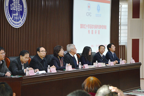 主讲人弗朗索瓦·比尼翁先生为瑞士人,1970年加入红十字国际委员会。今年是国际红十字会成立150周年,中国红十字会成立110周年,青岛红十字会成立100周年。该场讲座是继比尼翁先生的《国际红十字委员会与保护受难者》中文版(第一卷)首发仪式,青岛九中青岛红十字会旧址挂牌仪式之后青岛红十字会建会百年系列活动的又一项活动。