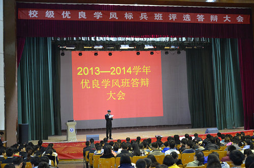 11月25日,在长江路校区科学会堂举行了2013-2014学年优良学风标兵班答辩大会。从全校465个班级中脱颖而出的30个班级参加答辩,21个班级获评优良学风标兵班。