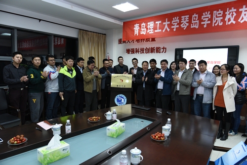 大会最后,各位领导与嘉宾共同为校友会总会揭牌。(琴岛学院)