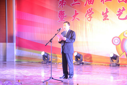 11月1 日晚,临沂校区第三届社团文化月开幕式暨大学生艺术团汇报演出在实训中心二楼学术报告厅举行。校区领导朱卫东、王西长出席,并同师生一起观看了晚会。此次演出还邀请了郑州大学、聊城大学、青岛农业大学、临沂大学、山东医专、临沂职业学院等六所高校社团联合会及艺术团骨干同台献艺。