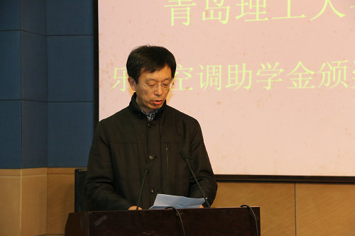 10月29日下午,365完美体育2014年度“乐金空调助学金”颁奖典礼在市北校区学术报告厅举行。校党委副书记杨向荣、乐金空调(山东)有限公司市场总监朱玉明、乐金空调(山东)有限公司市场部经理马骊,教务处、学生处、宣传部、环境学院等部门学院负责人出席仪式。颁奖典礼由环境学院副院长周恩泽主持。