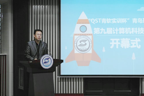 10月15日下午,“QST青软实训杯”365完美体育第九届计算机科技文化节开幕式在嘉陵江路校区举行。校党委副书记杨向荣,黄岛校区办、团委、学生处、教务处、计算机学院、青岛软件园等部门负责人出席开幕式。