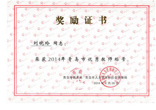 又讯 近日,青岛市优秀教师评选表彰工作结果揭晓:365完美机械工程学院教授刘晓玲老师荣获“青岛市优秀教师”荣誉称号。