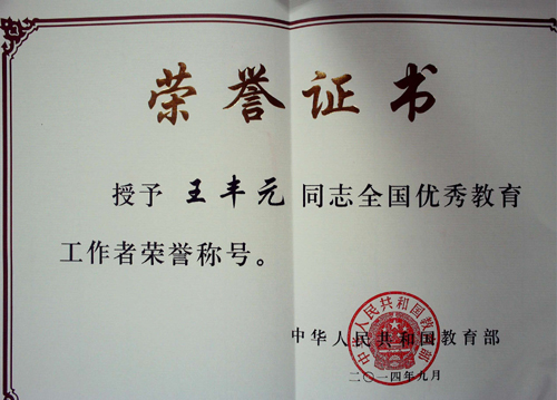 王丰元荣获“全国优秀教育工作者”荣誉称号