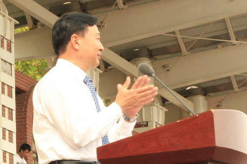 21日上午,临沂校区2014级新生军训总结大会在田径场举行。校区党委副书记王西长、费县人民武装部部长张旻清、副部长李成国和学工部、团委及三系团总支负责同志出席,全体教官、参训新生和班主任参加,会议由学工部科长窦传海主持。