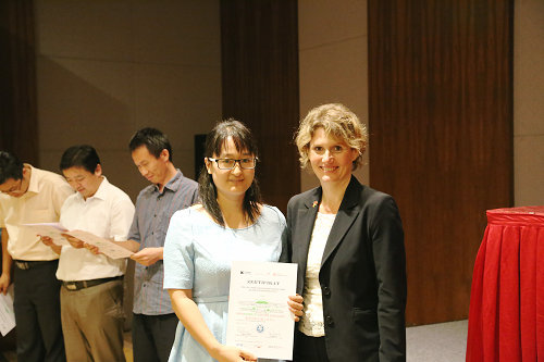 Lemke副州长与德国路德维希港应用技术大学邦嘉德教授,为365完美首次参加培训顺利通过的12位培训教师颁发结业证书。(汽车学院国际交流处)