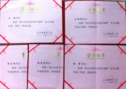 其中,张瑾的《激发知识女性实现中国梦的路径探析》调研报告荣获优秀调研成果三等奖。在“知识女性与实现中国梦”论文征集评选中,迟姗获一等奖,宋静静获二等奖,张瑾获三等奖,崔晋豫、刘菲菲获优秀奖。另外《研究型大学青年教师教学积极性影响因素研究》(刘龙海),作为优秀调研报告参加了大会交流发言。
