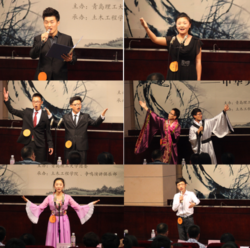 现代美文朗诵节目中,土木学院的男声合诵《沁园春 雪》精、气、神十足,感人肺腑、令人振奋,引来现场掌声雷动;来自外语学院的贾秀艳声情俱佳的朗诵《我的心》,更是受到了评委“有专家朗诵风范”的高度评价。