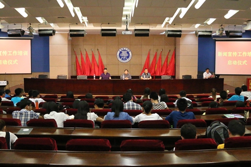 启动仪式后,赵笛作新闻写作专题讲座。市北校区新闻宣传通讯员、大学生记者站、广播站、研究生会和学生会各社团学生代表参加启动仪式。