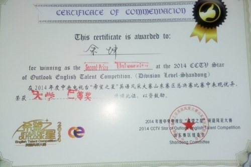 外语学院学生获CCTV英语风采大赛山东赛区二等奖