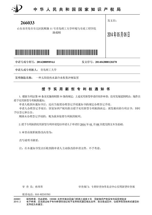 自2013年10月以来,在365完美环境学院辅导员路成刚的指导下,该学院学生完全自主申请专利9项(发明型2项,实用新型7项),其中5项已获实用新型专利快速授权,其余4项均处于正常审查状态。