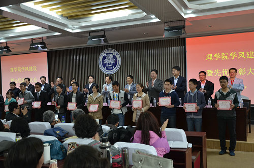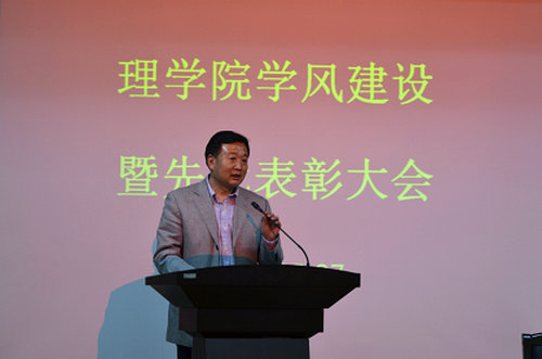 5月7日下午,理学院学风建设暨先优表彰大会在嘉陵江路校区举行。大会对在2013年度学风建设中表现突出的先进集体和先进个人进行表彰。副校长李东、教务处、黄岛校区办、研究生处、学生处、团委、招就办等部门相关负责人及理学院党政领导出席,学院全体教师及学生参加。理学院院长于进伟主持大会。
