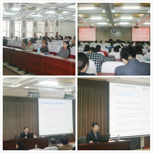 王粲作了“坚定职业信念、实现人生价值”的主题报告。他交流了参加山东省高校副书记示范培训班的心得体会,从践行社会主义核心价值观、高校学生危机事件干预、大学生网络思想工作、大学生就业创业教育、辅导员工作的职业化专业化、大学学生工作管理创新等方面介绍了学习内容。与大家分享了运用网络开展学生思想政治工作,通过建立思想政治工作台账实现人事匹配,群体性工作与个案相结合等学习收获。
