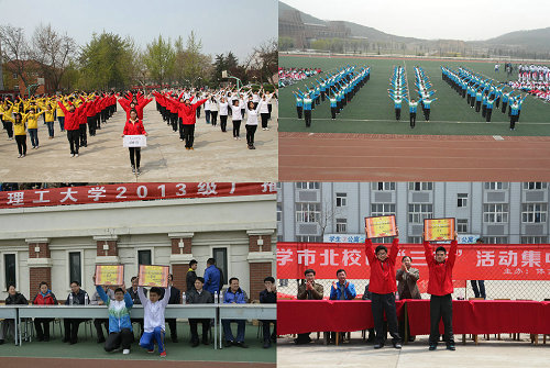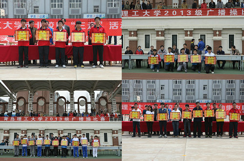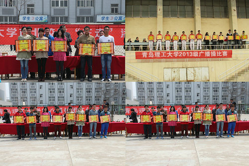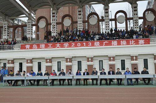 4月12日、13日,由体育部、学生处、团委联合主办,校学生会体育部承办的2013级广播操比赛分别在市北校区、嘉陵江路校区和长江路校区举行。校党委副书记杨向荣、副校长李东,黄岛校区办、体育部、学生处、教务处、团委等部门负责人及各学院党团工作干部观看比赛。
