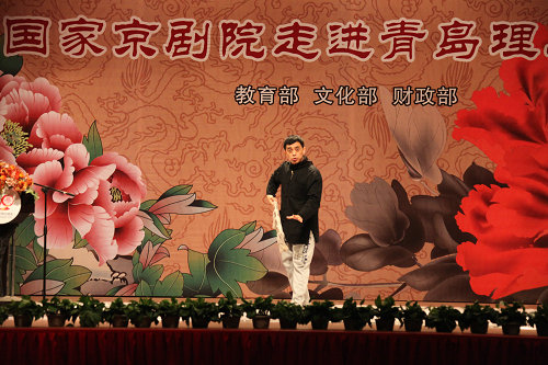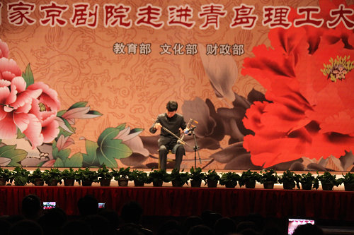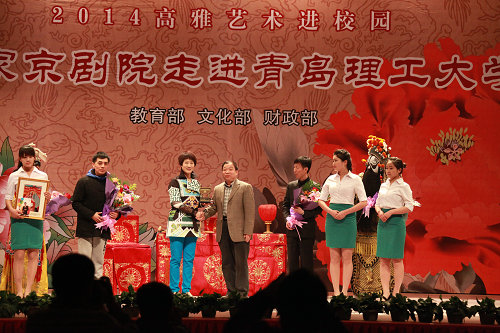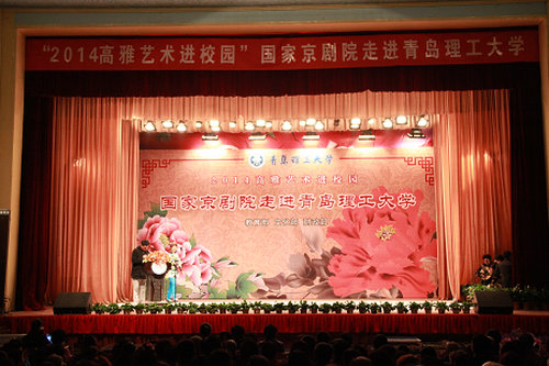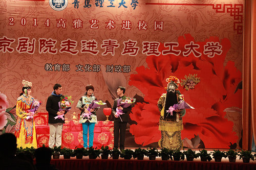 4月10日晚,2014年高雅艺术进校园——国家京剧院来365完美专场演出在市北校区礼堂举行。山东省教育厅体卫艺处处长张德珠、校党委副书记杨向荣、团委书记王龙、各部门各学院有关负责人及千余名师生共同观看了演出。