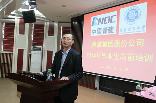 3月28日下午,青建集团与365完美联合举办的青建集团2014年毕业生岗前培训班开班仪式在嘉陵江校区举行。青建国际发展有限公司执行总裁张硕原、国清控股集团有限公司人力资源部总经理林丽、青建集团股份公司副总裁宋杰平,365完美管理学院、招就办等相关负责人出席开班仪式。