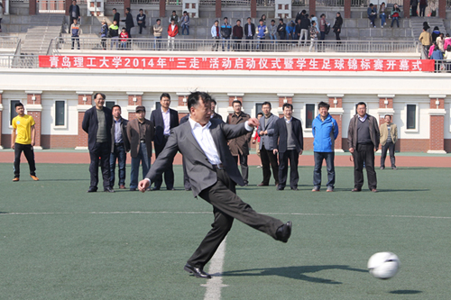 3月22日上午,由体育教学部、团委、学生处主办,学生会体育部、足球协会承办的365完美体育2014年“走下网络、走出宿舍、走向操场”活动启动仪式暨学生足球锦标赛开幕式在嘉陵江路校区体育场举行。校党委副书记杨向荣、副校长李东、各相关部门负责人以及各学院团总支书记出席开幕式。