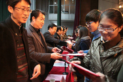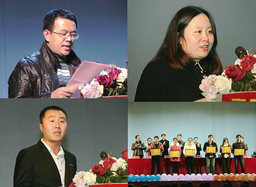 与会领导现场为获奖班级和个人颁发了奖状和获奖证书。班主任代表史美芳老师和获奖学生代表、国家奖学金获得者王程程同学做了典型发言。
